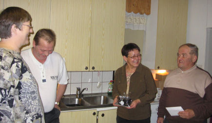 ![]() Saunakylän tupailtaSaunakylän pvy:n syyskokous/tupailta aloitettiin erittäin mukavissa merkeissä. Tupailtaa vietettiin Hilkka Linnan ja Veikko Logrenin kodissa. Kylälle Nurmijoelta loppukesästä muuttaneet Hilkka ja Veikko toivotettiin tervetulleiksi, Tammisen Sulo puhui jouhevasti, herkullisine sanakäänteineen. Meijän Hannu otti kuvan. Hilkka ja Veikko muuttivat taloon, jossa ovat asuneet mm. Marjatta ja Veikko Valkeinen, heitä ennen talossa asui "Rikkis Matti" kauan aikaa. Syyskokouksessa puitiin ne "tavalliset asiat". Tammisen Raimo oli puheenjohtajana ja Irma Mäkelä sihteerinä. Raimo valittiin Saunakylän pvy:n puheenjohtajaksi vuodelle 2007 jatkamaan tehtäväänsä kokousporukan yksimielisellä päätöksellä. Irma Hänninen ja Irma Mäkelä olivat erovuorossa johtokunnassa ja heidät valittiin uudelleen. Hilkka Linna valittiin pvy:n johtokuntaan Antero Ohrasen tilalle. Antero erosi johtokunnasta omasta pyynnöstään. Minkäänlaisia muita päätöksiä ei tehty. Kesällä aiottiin räväistä Valkeislammin virkistysalueella jonkinnäköistä kesäpäivän viettotapahtumaa. Virkistysretkikin ensi vuonna tehdään. Piispala todettiin viime vuonna hyväksi paikaksi, koska kaikki eivät halua uida vaan tehdä jotain muuta. Pointti on, että ne muuntekijät joutuvat kiipeämään seinää pitkin niin korkealle, että loppu tulee vastaan. Pääsääntöisesti virkistysretki on virkistysretki, silloin tehdään sitä mikä kellekin sopii. Ei ole uintipakkoa eikä pakonpakkoa, mutta melkein pakko on mukaan lähteä, sen verran on vatsalihaksia itsekunkin liikuteltava nauruhermoilla, jos ei muuten punnerruksia viitsi tehdä. Kanadassa Hannu Pölkki on lukenut Nopola Newsiä, ja lukemansa perusteella lähettänyt Juhani Ohraselle kirjeen, nähtyään Juhanin vaimon Liisan poisnukkumisesta. Lämpimät terveiset Saunakylältä Kanadaan. Nopola Newsin myötä läheiset ja tuttavat ovat siellä missä kotikin. |