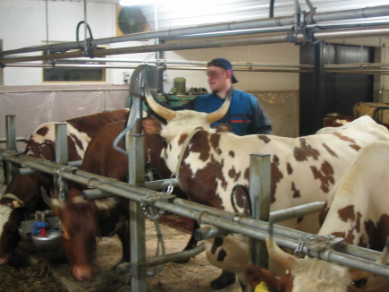 ![]() Keskisen tilalla uusi isäntäTuomas Pölkistä tuli Keskisen tilan 14 isäntä vuoden 2006 alussa kun Pekka ja Eevaliisa Pölkki antoivat pojalleen vetovastuun tilasta. Kävin jututtamassa Pölkin kylällä maitotilaansa pyörittävää Tuomasta nyt, kun noin vuosi on kulunut sukupolvenvaihdoksesta. Sukupolvenvahdos ei tuonut mukanaan hänelle mitään mullistavia yllätyksiä, onhan hän osallistunut jo ainakin kymmenen vuotta aktiivisesti tilan hoitamiseen. Ja luottavainen sekä positiivinen asenne kun on maatalousyrittämiseen niin kyllä ne asiatkin järjestyy. Tuomas on jo oman isännyytensä aikana tehnyt tuotantorakennuksen laajennuksen, joka valmistui vuoden 2006 syksyllä. "Uutta tilaa tarvittiin tuotantoon sekä samalla peruskorjattiin vanhan navetan puolta," perustelee nuori isäntä laajennuksen taustoja. Kannustimena toimivat myös hyvät investointiavustukset. Tuomas on tyytyväinen laajennukseen ja rakennusratkaisuihin. Hän sanoo, että asiat rakentamisessa on mietittävä tarkkaan etukäteen sekä tavarantoimittajilta on vaadittava tarkat päivämäärät jolloin tuote toimitetaan. Muuten tulee pian turhia katkoksia rakennustöissä. Tuotantorakennuksen laajennus tehtiin pääasiassa omalla työvoimalla. Tuomaksen vanhemmat osallistuvatkin vielä maatilan töihin. Tuomaksella on uskoa maatalouteen ja maidontuotantoon, vaikka pitkälle tulevaisuuteen ei voi maataloussektorilla olla varma oikein mistään. Hän sanookin, että tilaa kehitetään aktiivisesti ja tarvittaessa laajennetaan maatalousyritystä. |