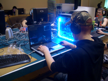 Paikalle oli saapunut kymmenkunta nuorta jotka oli raahanneet tietokoneet mukanaan ja viritelleet ne toisiinsa piuhoilla kiinni, että pystyy pelaamaan keskenään "rosvoa ja poliisia". Oli se minun nuoruudessa hieman erilaista tuo rosvoa ja poliisia.