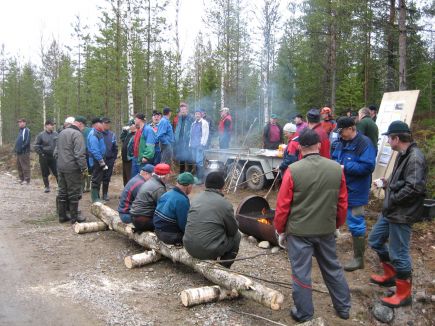 ![]() METSÄPÄIVÄ KYYJÄRVELLÄKyyjärven metsänhoitoyhdistys järjesti tiistaina 24.4.2007 Metsäpäivän metsänomistajille. Pilvisestä päivästä huolimatta Leppäahon taakse oli osannut noin 120 metsänomistajaa ja tunnelma oli välillä melko tiivistä, kuten kuvastakin voi päätellä. Aamulla 40 koululaista tutustui Lämpölaitokseen. Aamulla klo 9:00 ohjelma alkoi koulun 7. ja 8. luokkalaisten kanssa, kun kesällä kasattu energiapuukasa muutui Lampisen Hemmon hakkurissa tasalaatuiseksi hakkeeksi oppilaiden tarkkaavaisten silmien edessä. Viimekesäisestä lepikon raivauksesta kertyi 0,8 hehtaarin alueelta 33,6 kiintokuutiometriä energiapuuta. Korjuukustannukset olivat noin 600 € eli vajaat 18 € kiintokuutiometriä kohden. Kasasta tuli reilut 3 kontillista haketta eli 75 hakemottia, jonka Uusimäen Mauno kuljetti Lämpölaitokselle. Hakkeesta otettiin otantamittaus kosteusprosentin laskemista varten. 100 litran näyte-erän tuloksena oli, että yksi kuutio haketta painoi 265 kiloa. 300 gramman näyte kuivattiin mikrossa kuivaksi ja mitattiin kuivana, jolloin kosteusprosentti oli mahdollista laskea. 75 hakemotista tulee tuloja energiaosuukunnalta hiukan vajaa 1000 € (ALV 0%). Haketuksesta ja kuljetuksesta lämpölaitokselle tulee kuluja noin 330 € (ALV 0%). Niinpä tontin energiapuusta tulee noin 70 € tuloa. Jos energiapuu olisi tullut nuorenmetsänkunnostuskohteelta yksityismetsistä, niin metsänomistaja olisi saanut 7 € kiintokuutiometriltä KEMERA-energiapuunkorjuutukea eli 235,2 € 33,6 kiintokuutiometriltä. Lisäksi haketuksesta olisi tullut 1,7 €/hakekuutio haketustukea eli 127, 5 € 75 hakekuutiolta. Lisäksi raivaukseen olisi tullut 252,60 € hehtaarille nuorenmetsänkunnostustukea. Kemera-tukien ehtona on kuitenkin, että kohde olisi ollut vähintään yhden hehtaarin ja yksityismetsissä ja jäävä puusto olisi rinnankorkeudelta alle 16 cm paksua. Kemera-laki muuttuu ensivuoden alusta niin, että nuoren metsän hoitotuki on 180 € hehtaarilta. Omatoiminen metsänomistaja hyötyy uudistuksesta hehtaaria kohden noin 80 € taimikonhoidossa ja 18 € nuoren metsän hoidossa. Vieraalla teetettynä taimikonhoidon tuki nousee vajaat 30 € ja nuoren metsän hoidon tuki laskee reilut 72 € hehtaarilta. Muuten rahoitustuki ei muutu radikaalisti. Pystykarsinta ja pellonmetsitys loppuvat ja uutena tulee suometsienhoitotuki. Niinpä tämän vuoden aikana kannattaa panostaa palkkatyönä tehtyihin nuoren metsän raivauksiin ja laittaa käyttämättömät pellot kasvamaan puuta sekä jos aikaa ja innostusta on tehdä viimeiset tuetut pystykarsinnat. Leppäahon takana tutustuttiin metsänomistajien kanssa uusiin KEMERA-tukiin ja makusteltiin hyvää puukauppatilannetta. Puun hinta on noussut vuoden verran ja havutukeista maksetaan uudistusaloilla kesäkorjuuleimikoissa jonkin verran yli 60 €/m3. Mäntykuitukin on uudistushakkuissa ollut yli 20 €/m3. Hankintapuun hinta on myös noussut ja mänty- ja koivukuidusta on maksettu jopa yli 30 €/m3. Kelirikko- ja kesäleimikoista on pulaa hyvältä kohteelta hinta voi olla edellä mainittuja parempi. Myös kesällä tehtävistä harvennuksista on kysyntää ja hinnat ovat kohonneet selkeästi viime vuodesta. Metsäpäivässä metsänomistajat tutustuivat nuoren metsän hoitokohteeseen, jossa metsänhoitoyhdistyksen metsuri Juhani Kantonen teki ennakkoraivausta ja Veljekset Parkkonen AY hakkasi aines- ja energiapuuta Logbear telaharvesterilla. Puut tienlaitaan kuljetti Salaman Jukka metsäkoneella. Tapahtumassa muistettiin myös metsänhoitoyhdistyksen osaaikaista metsuria Heikki Kainua hänen 50-vuotispäivin tiimoilta. Metsänhoitoyhdistyksen viirin ja lippikset hänelle ojensivat yhdistyksen varapuheenjohtaja Juhani Vertanen ja toiminnanjohtaja Jukka Kainulainen. |
