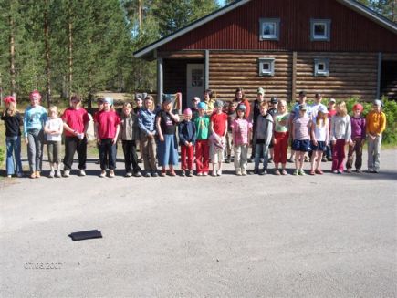 ![]() Tunnelmia varhaisnuorten leiriltäSeurakunnan varhaisnuortenleirilllä Piispalassa aurinko paistoi ja uiminen maistui! Kirkon parkkipaikalla kuhisee. Nelisenkymmentä helteen hellimää henkilöä vilkuilee ympärilleen: ”jaahas, ketäs täällä oikein onkaan…” Linja-auto kaartaa paikalle ja alkaa armoton kassien, pussien ja laukkujen sullominen autoon. Vielä kun löytyisi istumapaikat jokaiselle ja suoritetaan nimenhuuto niin sitten; nokka kohti Kannonkoskea ja menoksi, tästä se kesä alkaa! Kesän 2007 seurakunnan varhaisnuorten leiri saatiin viettää varsinaisessa kesäsäässä. Aurinko lämmitti suloisesti, jopa niin suloisesti että tuubillinen kortisoni-voidetta kului ihan vaan auringonpolttamia korjaillessa (osa voiteesta kului kyllä ötököitten puremiin…).Ah tätä ihanaa kesää! Piispalan viihtyisät tilat ja upea luonnonläheisyys vei leiriläiset kauas arjen murheista. Aika lensi kuin siivillä (tai frisbeellä) kun uinti - mikä oli melko paksunahkaisten hommaa (ke, to veden lämpötila ehkä n.10 astetta), jousiammunta - josta jotkut saivat upeita osumia, frisbeegolf - jossa kukaan ei tainnut yltää par:iin, seinäkiipeily - jota kaikki eivät halunneet kokeilla, saunominen ja kaikenlainen ilon pito vei mennessään. Yöllä nukuttiin (tai valvottiin) hikoillen ja päivällä leikittiin lumisotaa. Ja tietysti syötiin herkkuja! Uimaan olisi pitänyt päästä ihan joka vaiheessa, mutta olisihan se ollut näky jos lapset olisivat saapuneet lionneina ja kurttuisina torstaina kotiin! Joten uimatouhuja piti vähän rajoittaa.. tosin viimeisenä päivänä hetkeä ennen kotiin lähtöä oli kaikilla lupa loiskia vedessä ja vieläpä vaatteet päällä, mutta eipä niin rohkeita löytynyt kuin muutama...