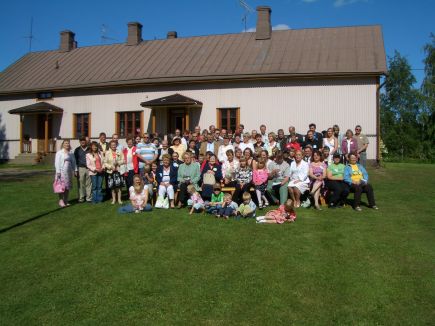 Aurinko paistoi ja tuuli sopivasti, kun Herman Aumasen jälkeläiset kokoontuivat ensimmäistä kertaa yhteiseen sukujuhlaan Kumpulan koululle ja sinne siksi, että on tapana pitää ensimmäinen yhteinen tapaaminen sukujuurten alkulähteillä. Sukukirjaa tutkiessani pistää silmään kohta missä mainitaan Kyyjärven olleen vuonna 1752 nimeltään KylerWi. Suomihan oli silloin vielä Ruotsin vallan alla. Saarijärven pitäjä ulottui Kyyjärvelle saakka ja Kyyjärven kylässä oli tällöin vain kaksi savua ja sotilastorppa. Ja mikä mielenkiintoista, Pölkin kylä oli siihen aikaan Kyyjärven keskusta. ( Nämä ovat suora lainaus sukukirjamme tekstistä.) |