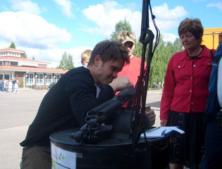 ![]() Woimakone 2007Taas on mahdollisuus kokeilla kädenvääntövoimaa Kyyjärven Markkinoilla 21.7.2007. Kyyjärven yrittäjien Woimakone oli viime vuonna ensimmäistä kertaa markkinoilla ja moni kävikin rohkeasti kokeilemassa voimiaan lahjomatonta konetta vastaan. Joillekin kone oli voittamaton, pari mieshenkilöä taitaa potea vieläkin käsivarttaan koneen jäljiltä, mutta kyllä konekin näki voittajansa mm kunnanjohtaja Mikael Palola sai väännettyä varren ”tappiin”. Ketkä mahtoivat olla ne kolme muuta? No, heidät löydät kätevästi Nopola Newsin arkistosta 7/2006 tai hakusanalla "käenvääntökone" Nyt on taas siis mahdollisuus kokeilla voimiaan talven harjoittelun jälkeen! |