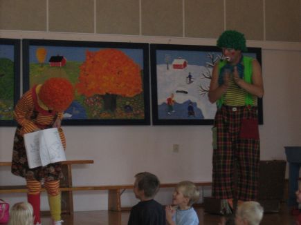 ![]() Nellin ja Niilon vierailuPellepariskunta Nelli ja Niilo vieraili Nopolan koululla. Yleisöä oli saapunut runsaasti katsomaan pellepariskunnan temppuja. Alle kouluikäisillä, eskareilla, ykkös-, kakkos- ja kolmosluokkalaisilla näytti olevan taikavarpaat ja vilkutuskädet mukana, kun Nelli ja Niilo–pellepariskunta esiintyi Nopolan koululla keskiviikkoaamuna klo 9.00. Esittäytymisten jälkeen Niilo-pelle taisi nukahtaa kesken esityksen, mutta kuiskaamalla hänet onneksi saatiin hereille. Nelli ja Niilo taikoivat lasten avustuksella taikapussistaan kummallisen näköisiä hammasharjoja, taikahuivi saattoi kadota jopa jonkun aikuisen korvaan ja taikapallo osasi taputtaa, nauraa ja haukkua kuin koira. Välillä laulettiin yhdessä ja kiitokseksi lapset saivat taikoa kukkia. Lopuksi Nelli ja Niilo ottivat halauksia vastaan samalla jakaen kortteja lapsille. Nelli ja Niilo vierailivat myös taikakoulun merkeissä 4.-6.luokilla. He tekivät erilaisia temppuja ja arvuuttelivat miten temppu tehdään. Oppilaat saivat myös oppia muutaman tempun. Ilmapalloista taiottiin kissoja koiria. Myös opettaja sai kokeilla oman hajuaistinsa varmuutta. Ohjelman tarjosi Kyyjärven LionsClub, Kyyjärven MLL ja Kyyjärven sivistystoimi.