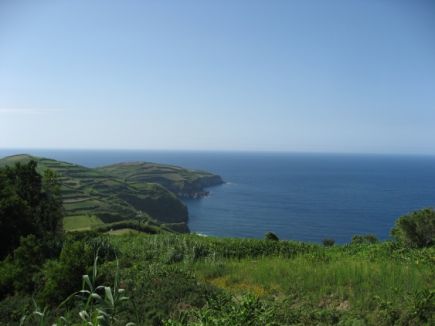 Azoreita voi pitää luonnosta kiinnostuneen turistin ihannekohteena. Me tosin emme ehtineet tutustua kuin pääsaareen, Sao Migueliin ja siihenkin kovin pintapuolisesti. Saari on vain n.80 km pitkä ja vajaat parikymmentä kilometriä leveä. Siellä on kaksi kaupunkia ja lukemattomia isompia ja pienempiä kyliä. Maatalous on yleinen elinkeino. Teiden varsilla näki paljon maissipeltoja ja banaaniviljelmiä. Ananasta kasvatetaan kasvihuoneissa ja se on kuulemma maailman parasta. Myös Euroopan ainoat kaksi teeviljelmää ovat tällä saarella. Lehmiä saarella on yhtä paljon kuin ihmisiä (heitä on n.132 000). Lehmät käytiin laitumella lypsämässä siirrettävän lypsyaseman avulla. Yleinen näky tien päällä oli hevosen vetämät kärryt maitotonkkineen. Tonkat saattoivat myös roikkua hevosen selässä pareittain. Niitä kuljetettiin myös kolmipyöräisellä mopolla tai pienellä kuorma-autolla. Usein tonkkien seurana istuskeli lavalla myös ihmisiä.