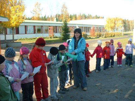![]() Pipojuhla”Lupaan ja vannon kautta kiven ja kannon, Näin hienosti raikui pipovala Nopolan koulun pihalla viime perjantaina. Me toppuluokkalaiset olimme kutsuneet eskarit ja eput viettämään kanssamme pipojuhlaa. Vieraat toivotettiin juhlallisesti tervetulleiksi. Oskari, Emilia, Milla, Heli ja Aleksi pitivät hienon tervetuliaispuheen. Seuraavana oli ohjelmassa alkujumppa, jonka pitivät notkeat jumppapojat Ville, Joona ja Arttu. Kaikille tuli jumpatessa lämmin ja reipas mieli. Leikkitoimikunta (Emmi, Moona, Mikael ja Kalle) oli keksinyt tapahtumaan leikkejä, joista aluksi leikittiin pantomiimileikki. Me olimme leiponeet vieraille Hanna-tädin kakkusia, joita sitten tarjoiltiin ja maisteltiin mehun kera. Reippaina tarjoilijoina toimi Juuso, Johanna, Valtteri ja Benjamin. Keksit menivät kaupan heti ja ne maistuivat todella namoisilta. Yllätysnumerona istutimme eskareiden, ykkösten ja kakkosten oman koulupuun. Kuuselle kaivettiin oma pesäkolo. Sitten sitä kasteltiin ja jäätiin toivomaan, että se lähtisi kasvamaan. Puulle päätettiin keksiä nimi, joka julkistetaan sitten myöhemmin. Suuret kiitokset puun lahjoittajalle Kyyjärven metsänhoitoyhdistykselle ja erityisesti Jari Kantoselle. Pipojuhlat olivat ainakin järjestäjien mielestä hienot ja hauskat. Toivottavasti pipot pysyvät päässä kylmillä keleillä, jotta kaikki pysymme terveinä ja energisinä. Kiitokset kaikille juhlaan osallistuneille oppilaille ja aikuisille. Terveisin Nopolan iloiset pipopäät |