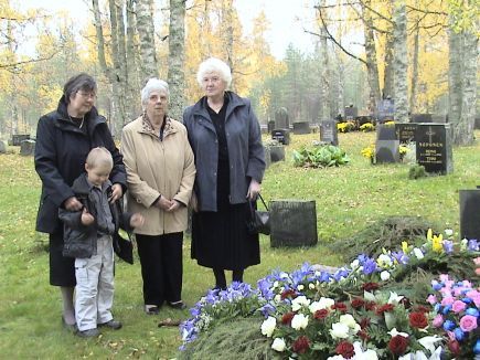 ![]() Jussi Rauhala haudan lepoonJohan Oskari Rauhala siunattiin mikkelinpäivänä 30.9.2007 Kyyjärven kappelissa. "Jussi" Rauhala oli syntynyt 3.8.1925 Pölkissä Kyyjärven rannalla Purolassa. Hän varttui suuren perheen keskellä. Äiti kuoli Jussin ollessa poikanen. Ruumiilliseen työhön Jussi tottui jo nuoresta alkaen. Paavo veli kaatui Syvärillä v.1942 ja saman vuoden syksyllä isä hukkui Kyyjärveen. Jussi oli armeijassa heti sodan loputtua. Hän oli rajavartiolaitoksen palveluksessa rajajääkärinä 1950-luvun alkupuolella. Sen jälkeen hän oli pitkään 1950-70 luvuilla suurilla tietyömailla töissä. Välillä hän kävi Ruotsissa valimolla töissä. Kun ruumiilliset kovat työt jäivät hän asusteli Elma sisarensa ja Kalevin luona. Voimien ehtyessä hän muutti Kyyjärven keskustaan omaan asuntoon, sitten pienkodille ja lopulta vanhainkotiin. Jussi oli luonteeltaan vaatimaton ja tyytyväinen ihminen. Hän oli kuollessaan 82-vuotias. Jussia jäivät kaipaamaan sisaret perheineen ja läheiset. Siunauksen jälkeen muistotilaisuutta vietettiin Kivirannassa. Kuvassa Jussin sisaret: Elma, Elmi ja Sylvi. |