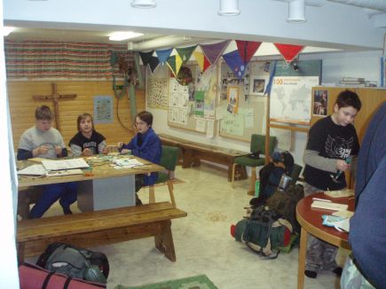 ![]() Nopola City HaikillaPerjantai 2.11. toi illansuussa kuusi vartiolaista kololle. Missä me nukutaan? oli kysymys , joka jäi vaille vastausta. Haikin rastitehtävät aloitettiin kallaamalla kaapista suomen lippua. Tuli todetuksi että narut niin poikki ettei normikokoisia lippuja pystynyt solmimaan salon naruihin. Harjoiteltiin sitten hieman pienemmällä lipulla lipun nostoa ja laskua ynnä siihen liittyvää etikettiä. Lippusolmu oikeaoppisesti ei varmaankaan onnistunut. Sehän on kerrattu jalussolmu. Solmuja väsättiin oikein urakalla, minäkin osaan taas hetkenaikaa muutakin kuin umpisolmun:) Lipunnosto harjoituksissa keli tuntui hieman viileältä. Mutta pihalle oli silti lähdettävä talsimaan kun kerran haikilla oltiin. Seuraavana vastaan tuli pyöräkolari. Kaks oli törmännyt yhteen ja heitä piti osata auttaa. Hoh hoijaa, pitää katsoa vissiin peiliin... eli opeteltavaa sarkaa vielä riittää. Onneksi tekemällä ja harjoittelemalla oppii. Haikki jatkui Honkalehdon ekopisteen kautta Sopukka grillille lämmittelemään. Otettiin siinä vain kartalta kompassin avulla suuntaa ruokarastille. Ja nuuhkittiin grilliherkkujen tuoksuja. Narinaa alkoi kuulua siinä vaiheessa kun kerroin, että pimeä taival metsän poikki Harsulle alkaa. Porukalla siitäkin selvittiin. Ihmeteltiin tovi palanutta hiihtomajaa. Ja talsittiin kohti laavua. Pururadan valot sammuivat juuri sopivasti kun pojat alkoi ruoan tekoon. Joku totesi että iltakymmeneltä tälläistä vahvaa ruokaa syödään! Lämmitti kuitenkin mieltä ja sisuksia mukavasti. Sanoin kokkipojille etten ole näin hyvää broilerikermajuusto kastiketta ennen syönyt. Ja matka jatkui laavulta kohti Virkkakangasta. Taas hieman narinaa ja nurinaa kuului pimeydessä. Pitkän, tosi pitkän saran poikki kävely lyhensi hieman matkaa. Joku mukana kävelevä aikuinen oli eniten suunnasta sekaisin, vaikka oltiin melkein perillä. Hiljaisella rastilla sytytettiin vuorokauden jo vaihtuessa kynttilät. Hautausmaa oli kaunis monien kynttilöiden valaistessa pimeää yötä. Eikä tunnelma siellä ollut lainkaan pelottava. Seuraavaksi kengänkärjet suunnattiin kohti Nopola cityä. Heijastimet olivat tarpeen. Viimein kysely yöpaikan sijainnista loppui kun päästiin lämpimään levittämään pussit ja patjat lattialle. Minua nukutti mutta Lynxejä vielä kukutti. Oli pakollisen korttiringin aika. Puoli kolme yöllä tuhistiin kuitenkin jo kaivattua unta. Aamulla nukuttiin ihan pikkasen pommiin... Aika nopeasti oltiin kuitenkin lähtövalmiina pihalle aamupalan tekoon. Sitä mentiin tekemään pikkasen kauemmas eli Kalettoman laavulle. Trangian polttoneste jäi matkasta. Keittivät sitten puurot ja sopat nuotiolla. Pakolliset kivet piti hettää lammen jäälle ja yhen pojan mittanen kepukka hakata "suohon", eli sitä normaalia energiaa, sanoisin. Enää odotti yöpaikan lattian siivous ja jokamiehen oikeuksien läpikäyminen. Olivat jo aika kypsiä minuun, eli oli aika lähteä kotiin. |