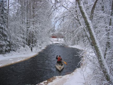 Tapio Mäntynen ei malttanut odottaa kesää vaan otti kanootin esille 2.1.2008, vei sen autolla kytötien sillalle, laski vesille ja meloi myötävirtaan Nopolanjoen Sahapakan koskineen Tuliharjuntien siltojen ali asuntonsa ikkunan alle. Tuolloin jokimaisema oli kesäinen, ei tippaakaan lunta.