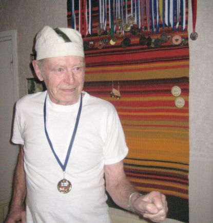 ![]() Matille kultamitaliMies ja mitalit. Kaulassa uusin mitali. Kyyjärven KYKY on liittynyt Suomen Veteraaniurheiluliiton (SVU) jäseneksi tämän vuoden alusta. Kyvyllä on muutama aktiivinen veteraaniurheilija ja he käyvät vuoden aikana muutamissa kisoissa. Näin talvikaudella kilpaillaan hallikisoissa. Veteraanien SM -hallikilpailut pidettiin 9.-10.2.08 Tampereella Pirkkahallissa. Kilpailuissa oli ennätysosanotto; 142.sta seurasta n. 600 urheilijaa. Tampereen Pyrinnön järjestämissä kilpailuissa Kyvyn Veteraaniurheilukausi alkoi loistavasti, sillä Matti Tamminen oli mukana M 80 sarjan 3000m kävelyssä ja voitti kilpailun. M80 3000 m kävely Loppukilpailu Onnea Matille kisoihin. Muita urheilutuloksia: tuloksen 195cm. |
