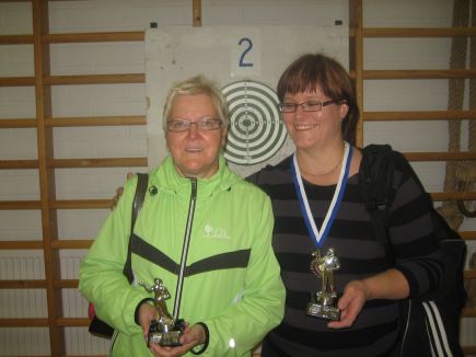 ![]() Anne Mäntyselle PM-pronssiaSaarijärvellä heitettiin Pm ja PK 25-tikkaa Kolkanlahdessa metsäkoulun tiloissa ratkottiin tikkamestarit perjantai-iltana 19.9.2008. Ensin heitettiin 25 tikkaa piirinmestaruuksista, jonka jälkeen 25 tikkaa piirikunnallisena kilpailuna sarjoittain. Miesten piirinmestaruuden vei A-sarjalainen Paavon Tikkaa edustava Tapani Iso-Ahola 201 tuloksella, josta toinen kiinnitys M-sarjaan. Piirikunnallisessa kilpailussa Tapani voitti MA sarjan illan kovimmalla tuloksella 210 ja kolmas kiinnitys, joten ensi vuonna Tapani heittää MM sarjassa. Naisten piirinmestaruus meni Karstulan Tikkaseuran Sinikka Hyvöselle 200 pistettä. Toisena saman seuran Terttu Syrjälä 187 p. Kolmantenna Kyyjärven Kykyä edustava Anne Mäntynen 183 p. Kykyläisiltä kisat meni kohtuullisen hyvin, Annen Pm-pronssi ja PK-kisan voitto 199 p. NB-sarjassa Helena Hietalaakson sijoitus oli toinen 168 p. MC-sarjassa Alpo Viitala viides 178 p, kuin myös PM-kisassa 181 p.