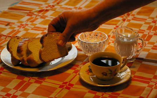 Kahavin kans piti olla kastelua. Nykysin on kaikenlaista torttua ja paita ja piirakkaa, sillon oli nisukukkoa tai korppuja tai vesrinkuloita. Juhuliin tietysti leivottiin sen seittemää sorttia kakkuja, pikkuleipiä ja täytekakku vielä kaiken kukkuraks. Jos tarijolla oli nisukukkoa ja pikkuleipiä, niin siinäkin oli järijestys: ensin otettiin nisua ja sitten vasta pikkuleipiä. Oiskohan siitä tullu se sanonta ku joku rykkii oikein kovasti:" Elä pullaan tukehu, jää pikkuleivät syömätä!"