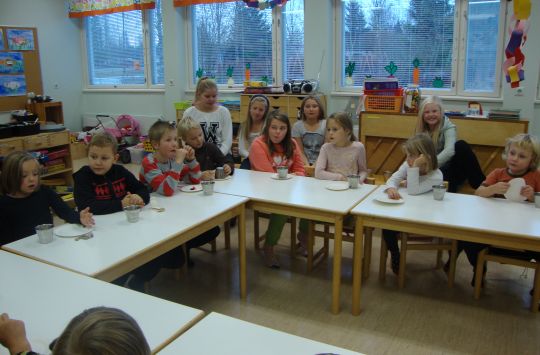 Esikoulussa vietettiin juhlahetki Nopolan koulun esikoululaisten kunniaksi.