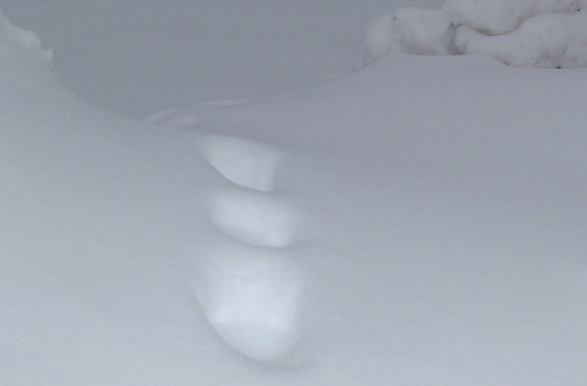 Sunnuntain ja Lauantain välisenä yönä oli ilves liikkunut koulun alueelta Touhulan nurkalle ja siitä Pillikon Keijon koiran häkille ja edelleen rantapusikoihin sataman läheisyyteen. Kotikissat kyllä häipyvät hämärissä ilveksen suihin joten olkaapa tarkkoina kissanomistajat. Aika suuret nuo jäljet ovat, noin 8 cm halkaisijaltaan ja sieltä kun vielä työntää kynnet esille niin eipä tule pieniä naarmuja vaan oikein lihasuikaleita. Kyllä tuo ilveskin ihmistä pelkää joten ei syytä huoleen. Vaikeata tuo kuvien ottaminen uudesta valkoisesta lumesta.