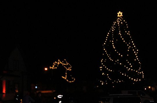 Tänä vuonna laitosmiehet Janne, Jukka ja Jyrki olivat virittäneet Suomen komeimman kaksilatvaisen kuusen viereen myös "teoksen" ja vieläpä Kotikylän puistoon valot kahteen pienempään luonnon kuuseen. Hieno homma. Ensi vuodelle on jo uusia kujeita suunnitteilla.