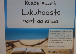 Lukeminen on mukavaa aina, joten lukemista pitää päästä hakemaan myös kesällä. Kirjasto palveleekin koko kesän normaaleilla aukioloajoilla.