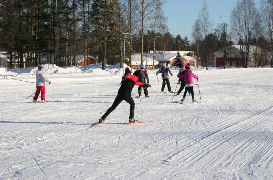 Keskiviikkona 20.2.2013 saivat Nopolan koulun 3.-6. luokkalaiset osallistua Kyyjärven MLL:n paikallisyhdistyksen tarjoamaan hiihtokouluun. Urheilukentälle oli tampattu levä luistelubaana, mihin mahtuivat kaikki oppilaat omalta luokaltaan yhtä aikaa. Kuisma kertoi tärkeimmät vinkit, näytti esimerkkiä ja oppilaat kokeilivat perässä. Palautetta tuli mm. siittä että hiihdossakin maltti on valttia! Ei kannata hosua, tuumasi Kuisma. Posket punaisina oppilaat yrittivät ja onnistuivatkin eri hiihtotyyleissä.