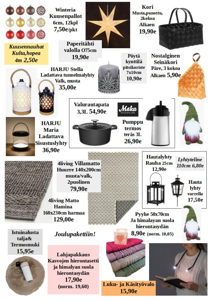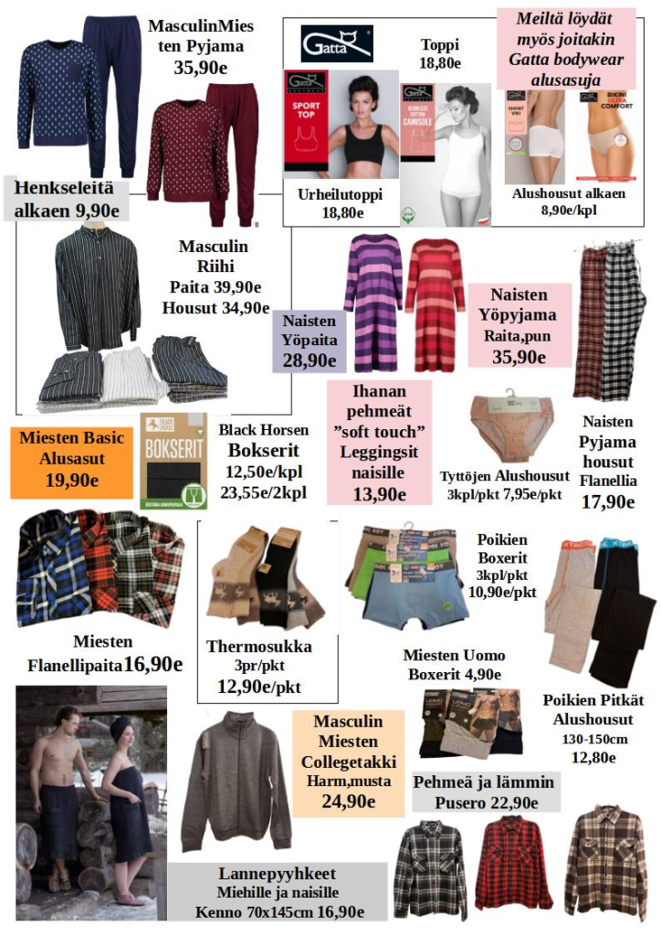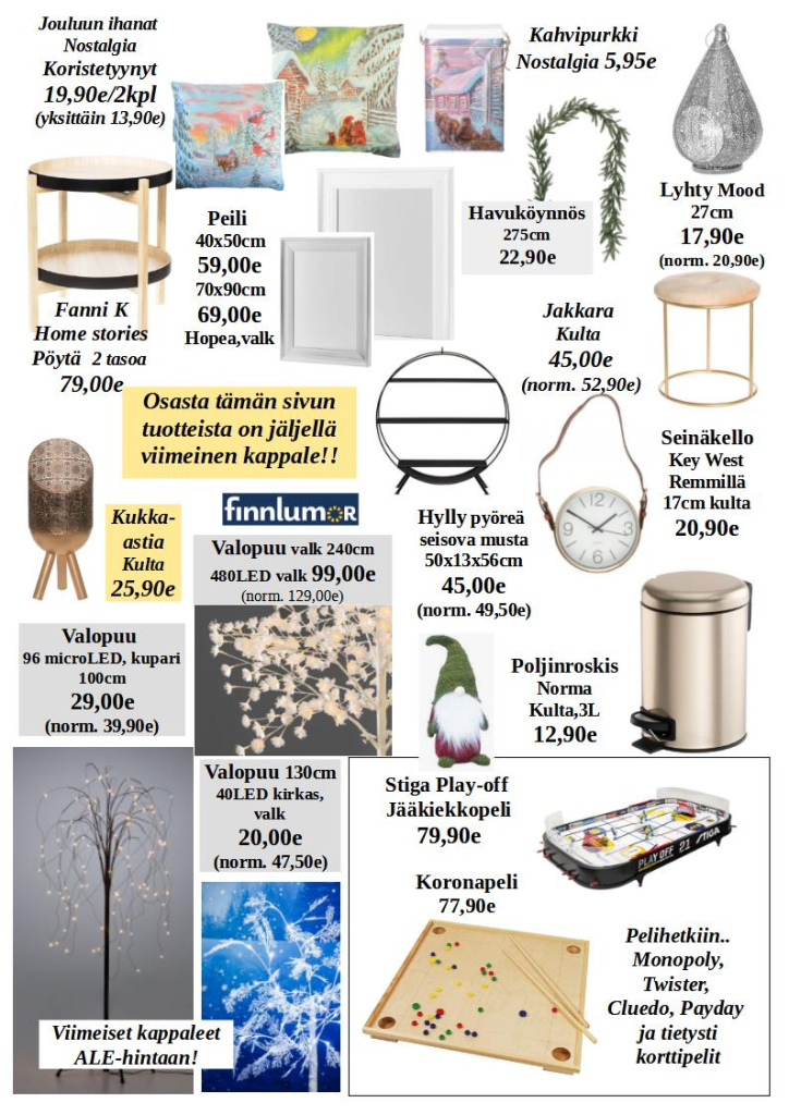 Myymälässä on edustettuna laadukkaita merkkituotteita, kuten Helkama-pyörät, NunnaUunit, Upo-kodinkoneet, Viki-kiukaat ja Stiga-puutarhakoneet.