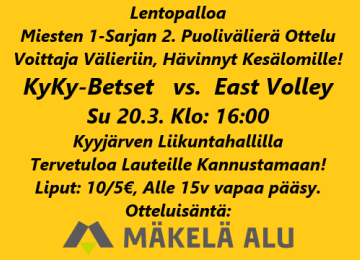 Lentopalloa KyKy-Betset vs. East Volley Su 20.3. Klo: 16:00