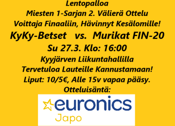 Lentopalloa KyKy-Betset vs. Murikat FIN-20 Su 27.3. Klo: 16:00